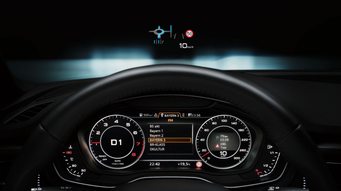 im Audi virtual cockpit und Head-Up-Display erscheint dann ein entsprechender Hinweis. Wenn der Fahrer es wünscht, regelt das