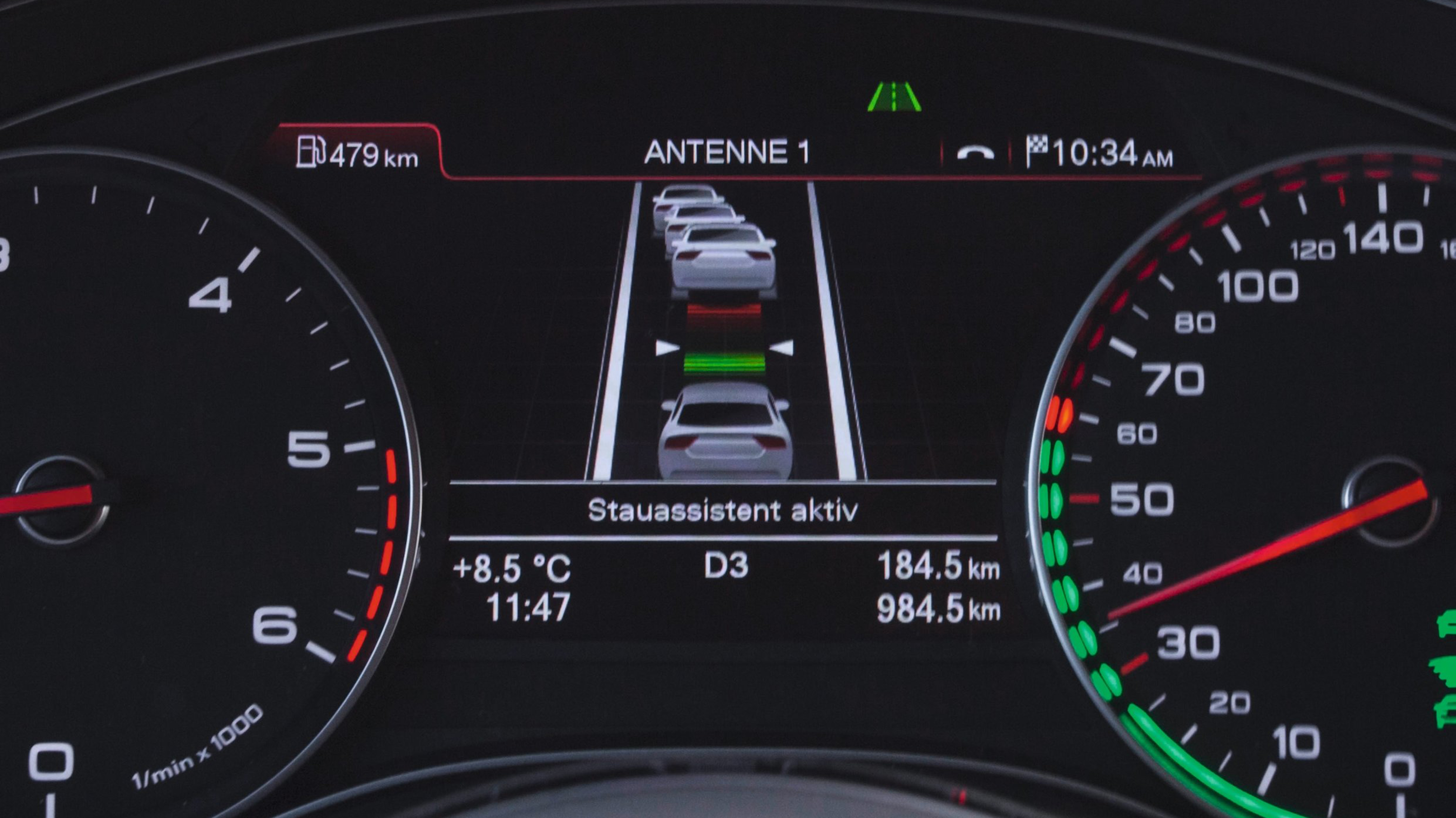 Das optionale adaptive cruise control Stop&Go System inklusive Stauassistent hält die neue A4 Limousine auf Abstand